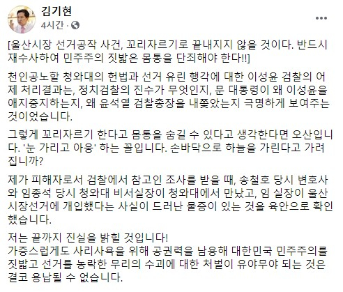 김기현 전 시장의 동생이 2018년 변호사법 위반 등의.